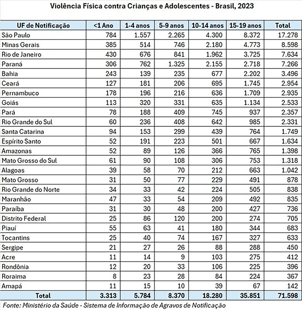 CIDADE Amazonas registrou 1.398 casos de violência física contra crianças, alerta SBP REDAÇÃO 06/11/2024 as 8:41 pm Compartilhe: Quer receber notícias no seu WhatsApp? Então, entre no grupo do Fato360 agora!