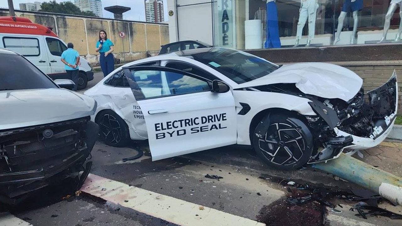 CIDADE DESTAQUE SECUNDÁRIO Carro colide com dois veículos e derruba poste no Vieiralves em Manaus REDAÇÃO as 1:56 pm