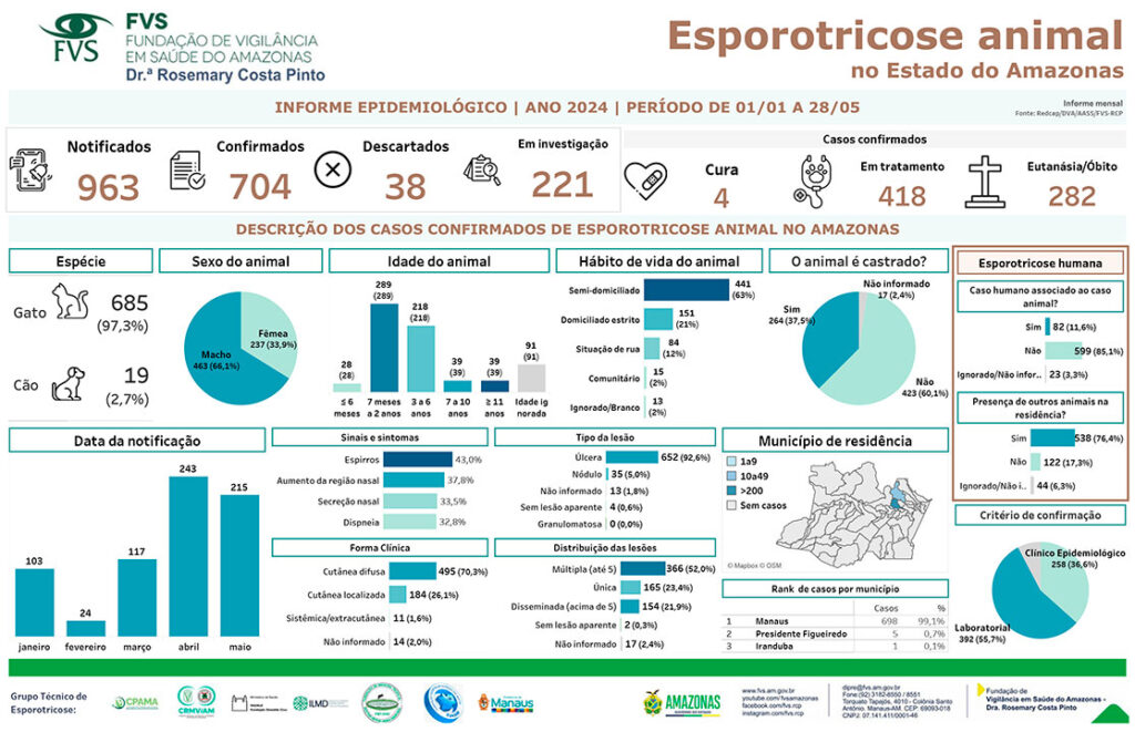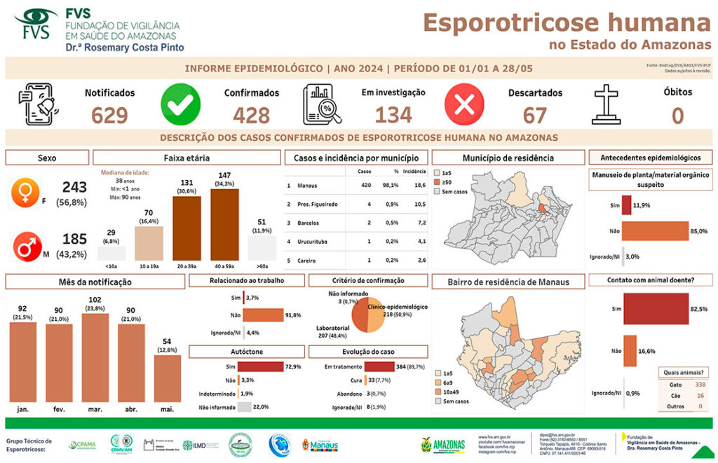 SAÚDE Amazonas registra 428 casos de esporotricose humana REDAÇÃO 02/06/2024 as 6:42 pm Compartilhe: Quer receber notícias no seu WhatsApp? Então, entre no grupo do Fato360 agora!