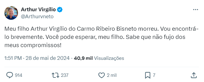 Ex-deputado federal Arthur Bisneto morre em Manaus