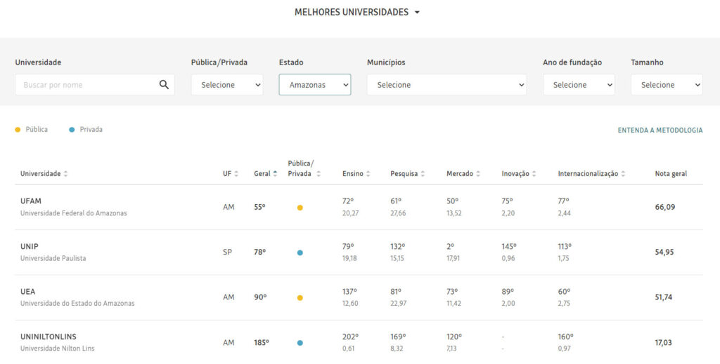 Ranking universitário revela: Ufam em 55º e UEA em 90º lugar